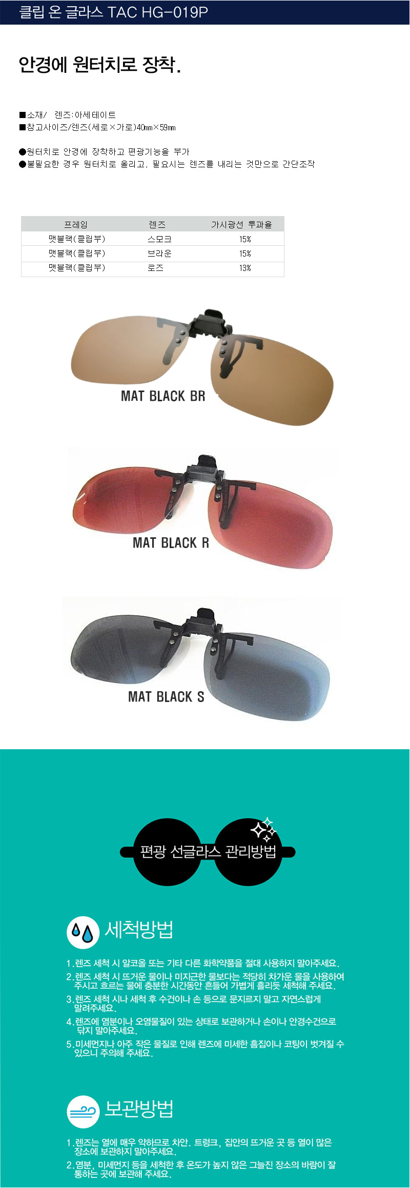 HG-019P 시마노 클립 편광렌즈 선글라스