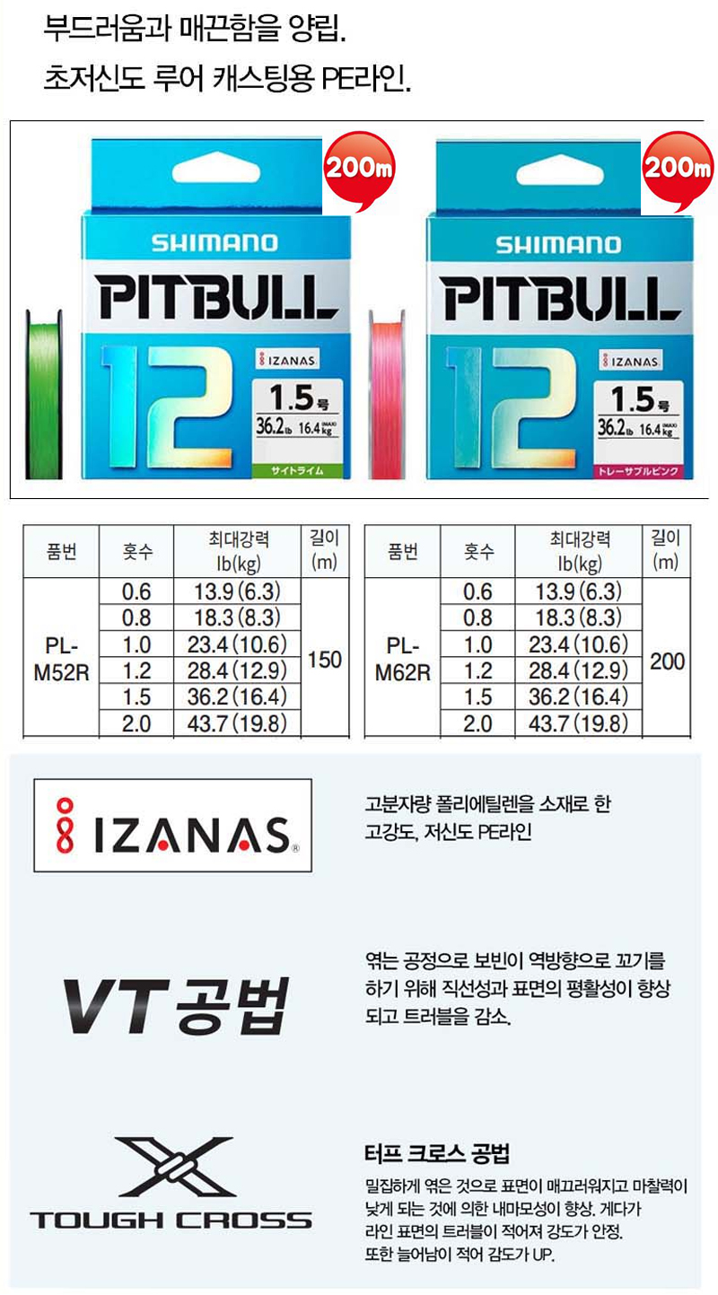 형제낚시 낚시용품의 모든것 시마노 PL-M62R 핏불 시마노 12합사 PE라인 PITBULL 200m