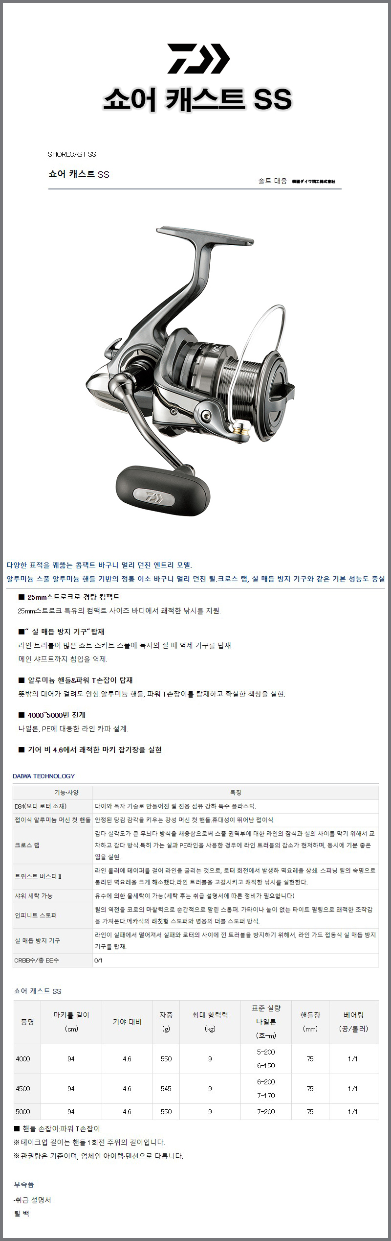 형제낚시 낚시용품의 모든것 다이와 18 쇼어캐스트SS 다이와 원투릴 카고