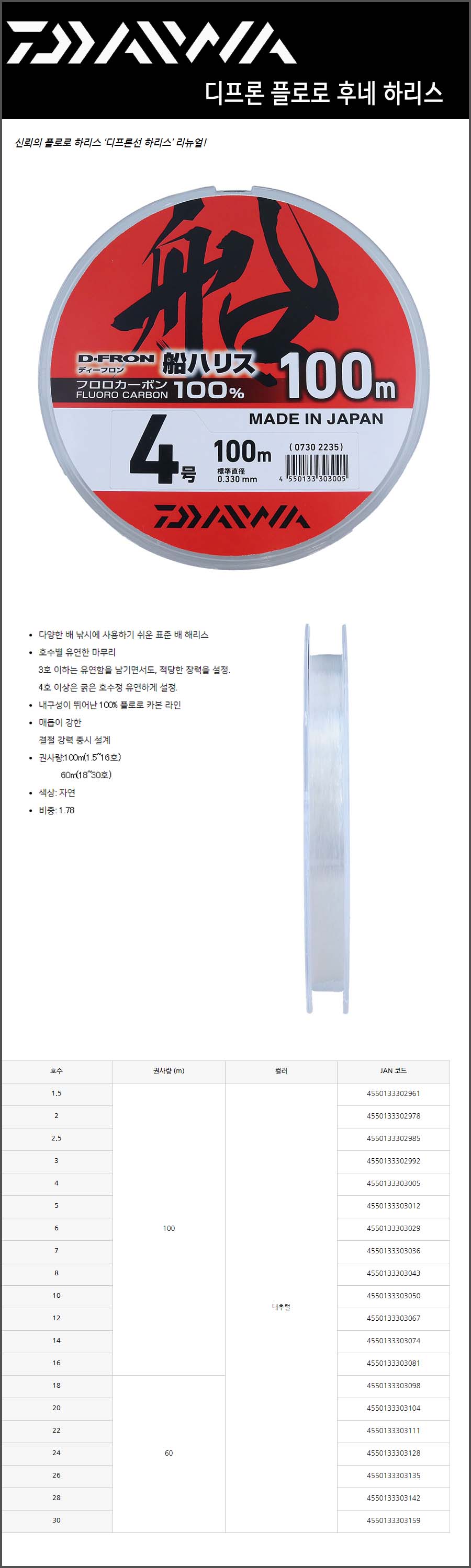 형제낚시 낚시용품의 모든것 다이와 디프론 플로로 후네 하리스 다이와 카본라인 100m