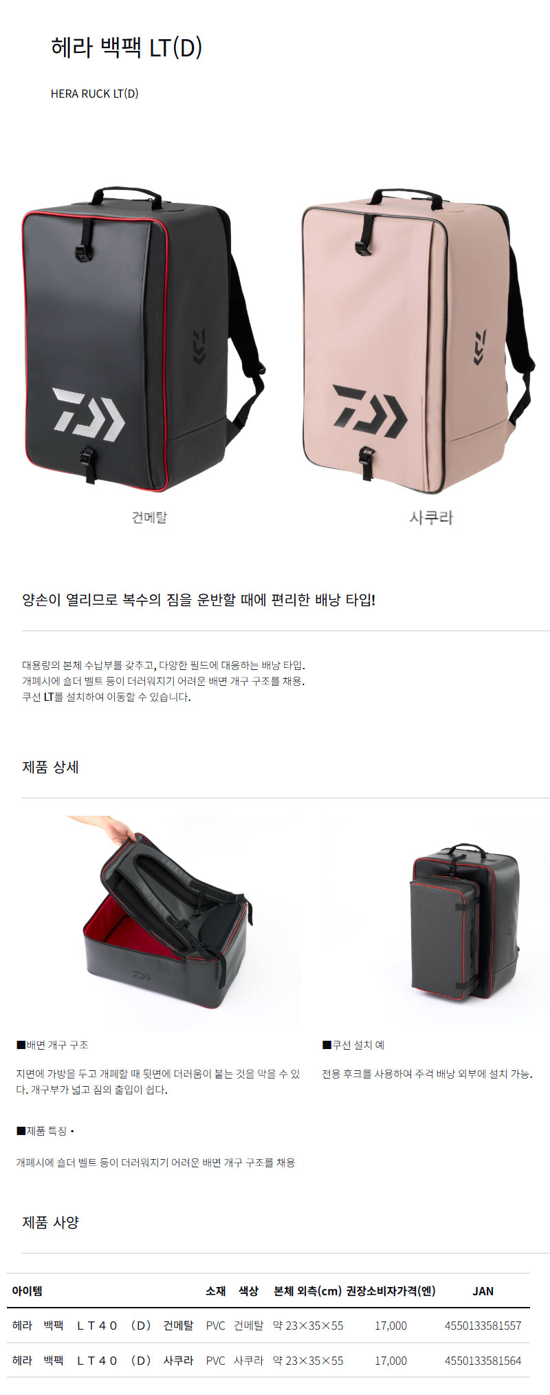헤라 백팩 LT(D) 다이와 민물 보조가방