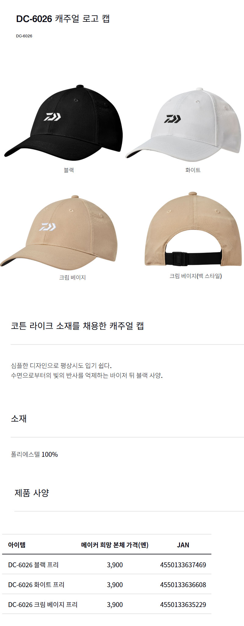 DC-6026 캐주얼 로고 캡 다이와 모자