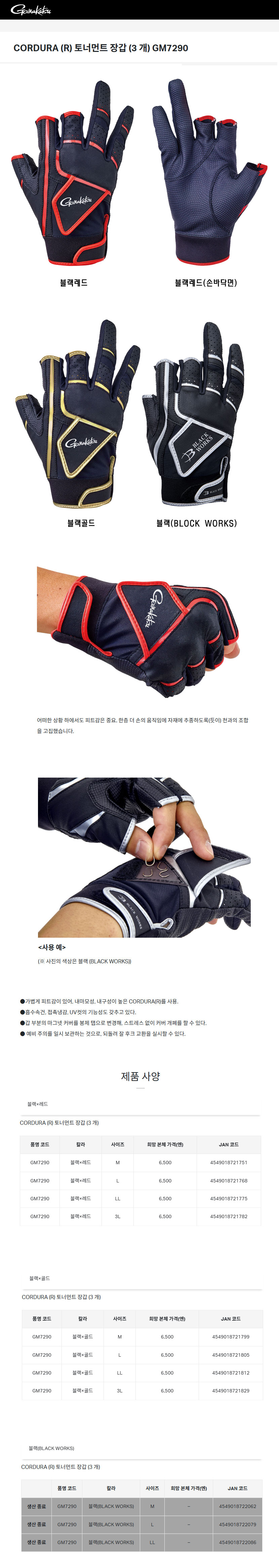 형제낚시 낚시용품의 모든것 가마가츠 CORDURA (R) 토너먼트 장갑 (3지컷) GM7290