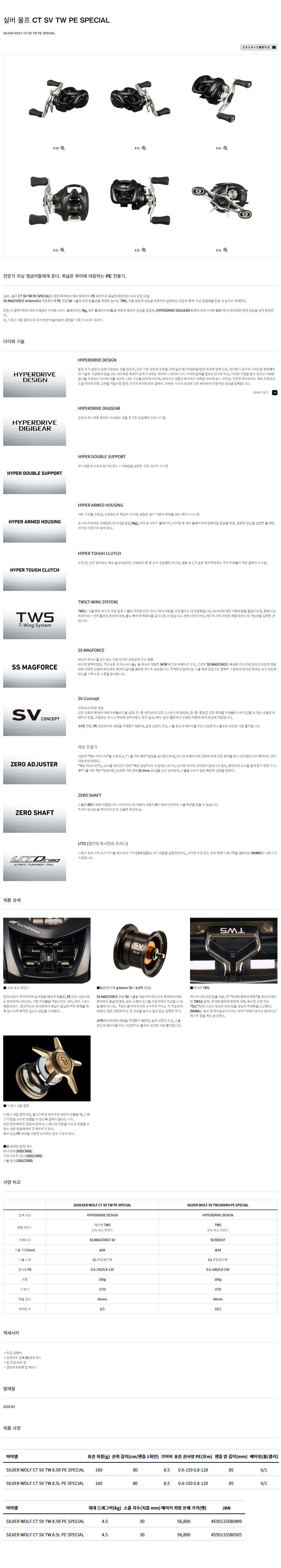 형제낚시 낚시용품의 모든것 다이와 실버울프 CT SV TW PE SPEC 다이와 베이트릴