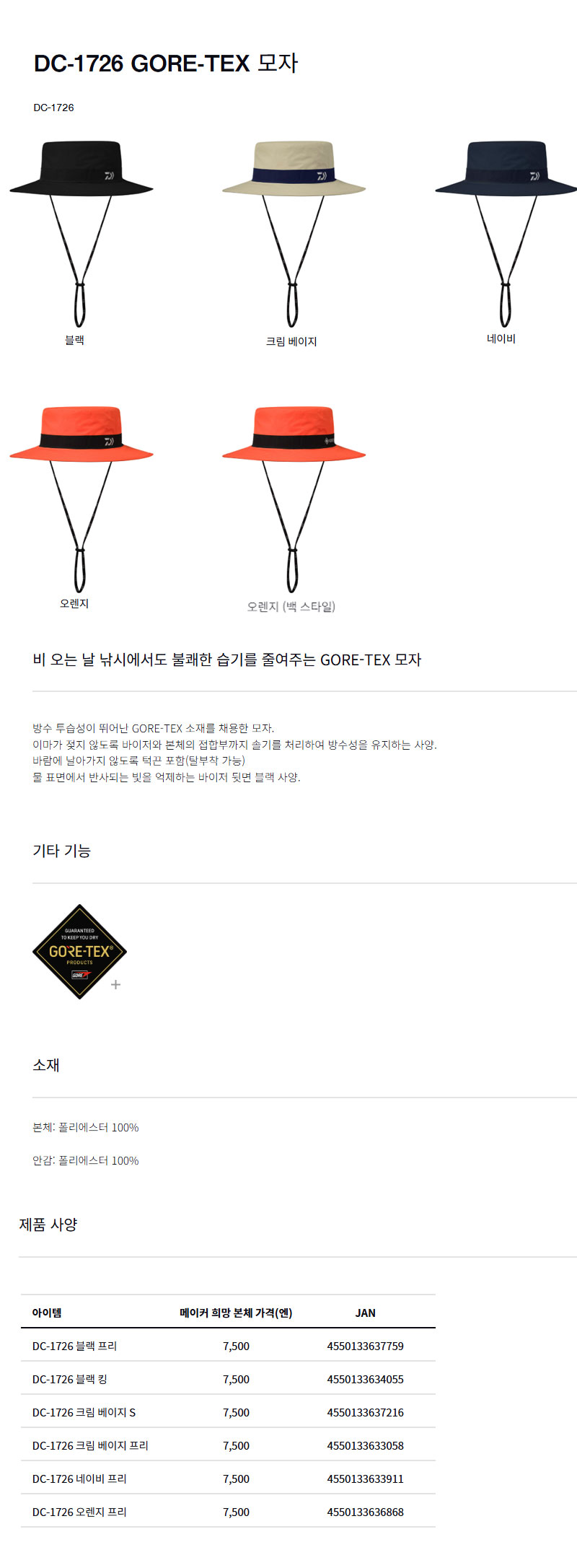 DC-1726 다이와 벙거지 모자 고어텍스