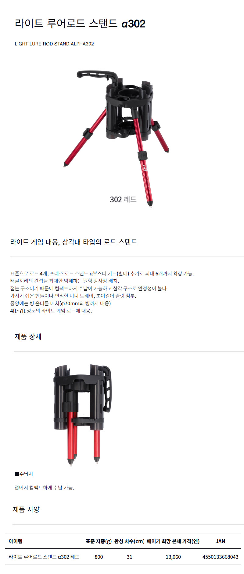 형제낚시 낚시용품의 모든것 다이와 라이트 루어로드 스탠드 α302 다이와 낚시대 거치대