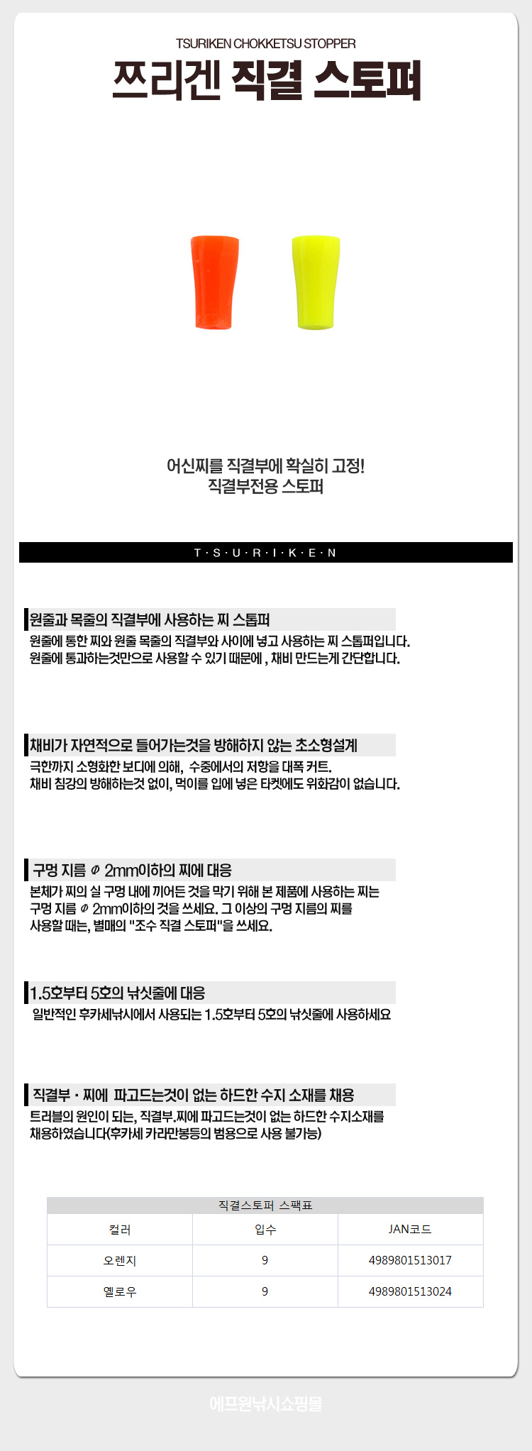 형제낚시 낚시용품의 모든것 쯔리겐 직결 스토퍼 /고무 낚시 채비 소품