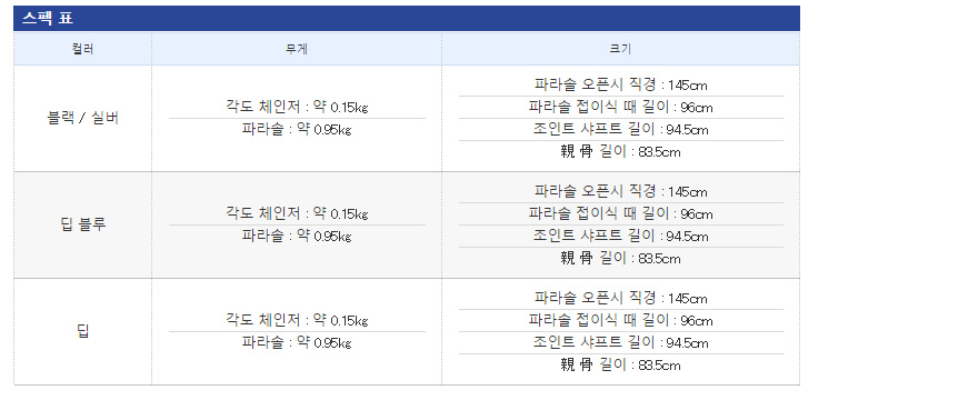 ※ 각 체인저있는 파라솔 (PS-021I)는 완전 방수가 없습니다.