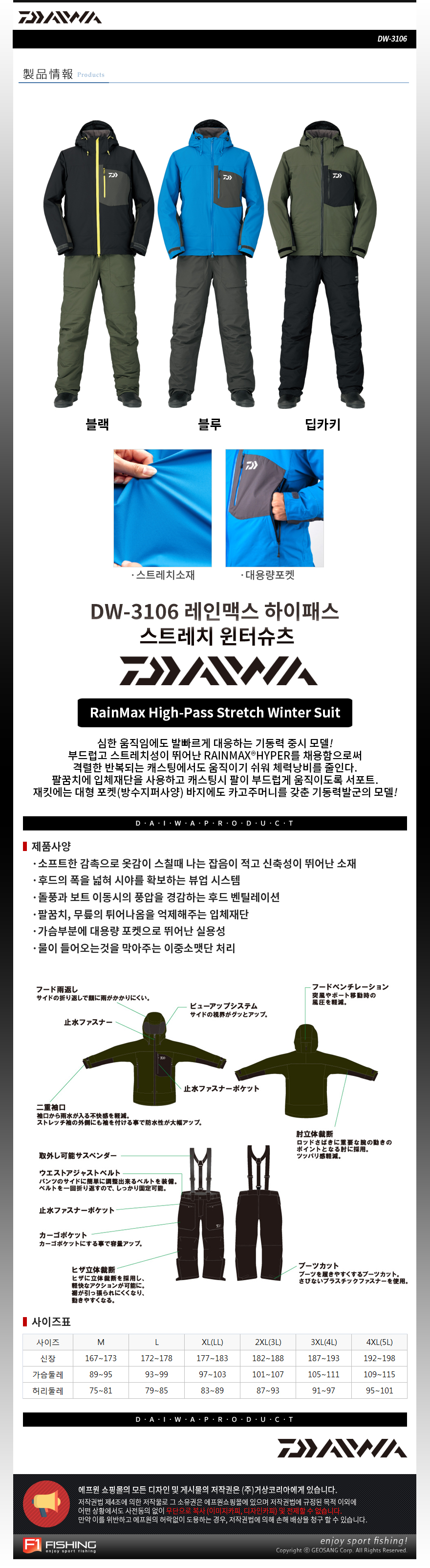 다이와 DW-3106 딥카키 블루/방한낚시복 방수복