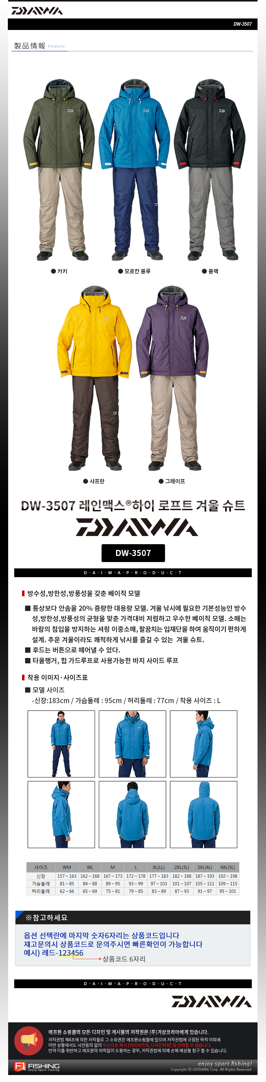 형제낚시 낚시용품의 모든것 다이와 다이와 DW-3507 레인맥스 방한복 카키/겨울낚시비옷