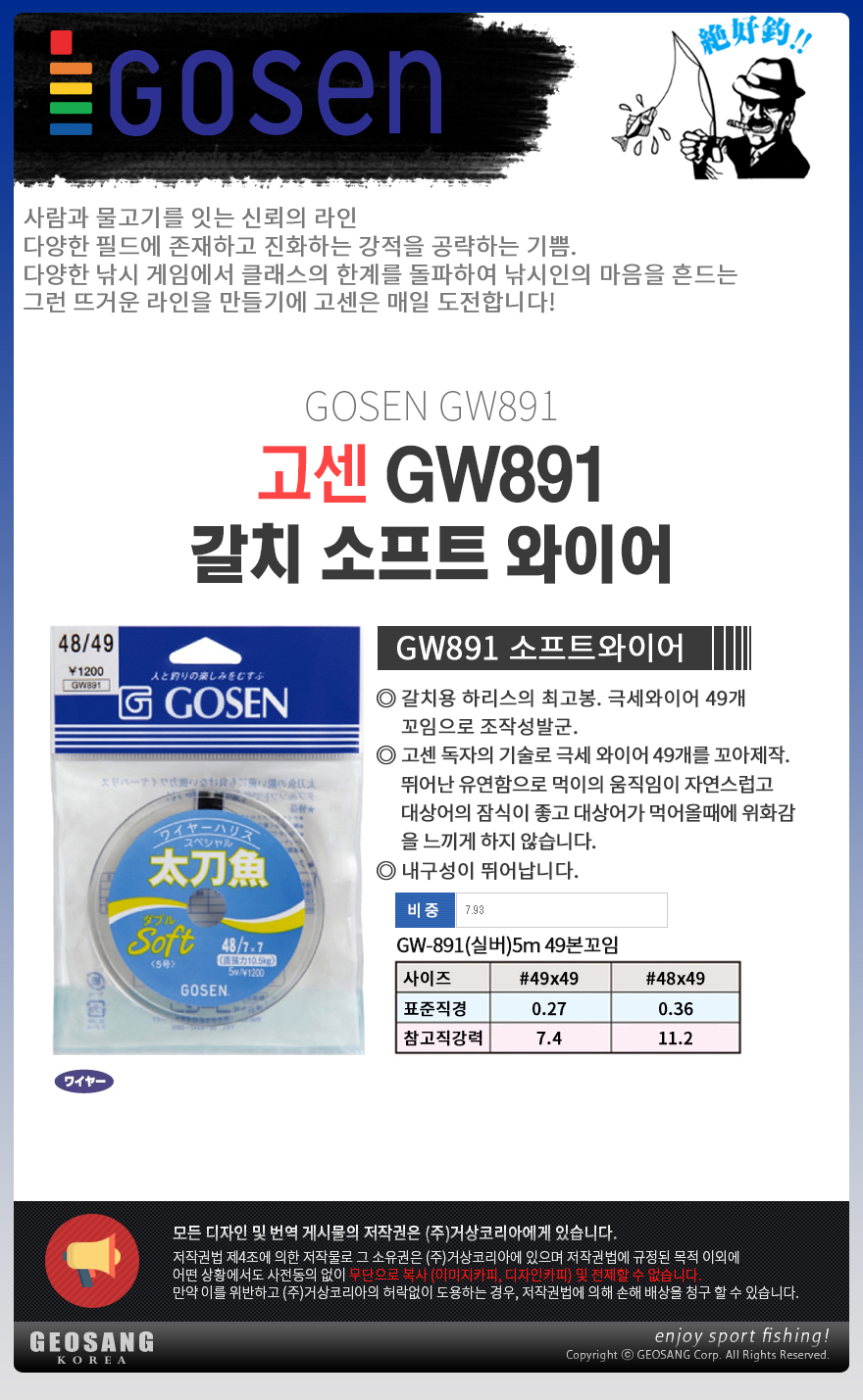 형제낚시 낚시용품의 모든것 고센 GW891 갈치 소프트와이어 5m/갈치채비 고센목줄