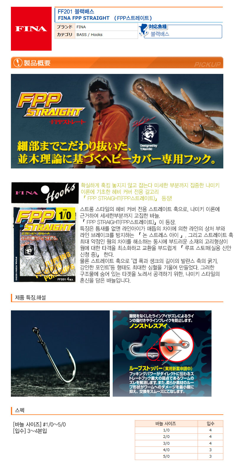 형제낚시 낚시용품의 모든것 하야부사 FF201 피나 FPP 스트레이트 훅