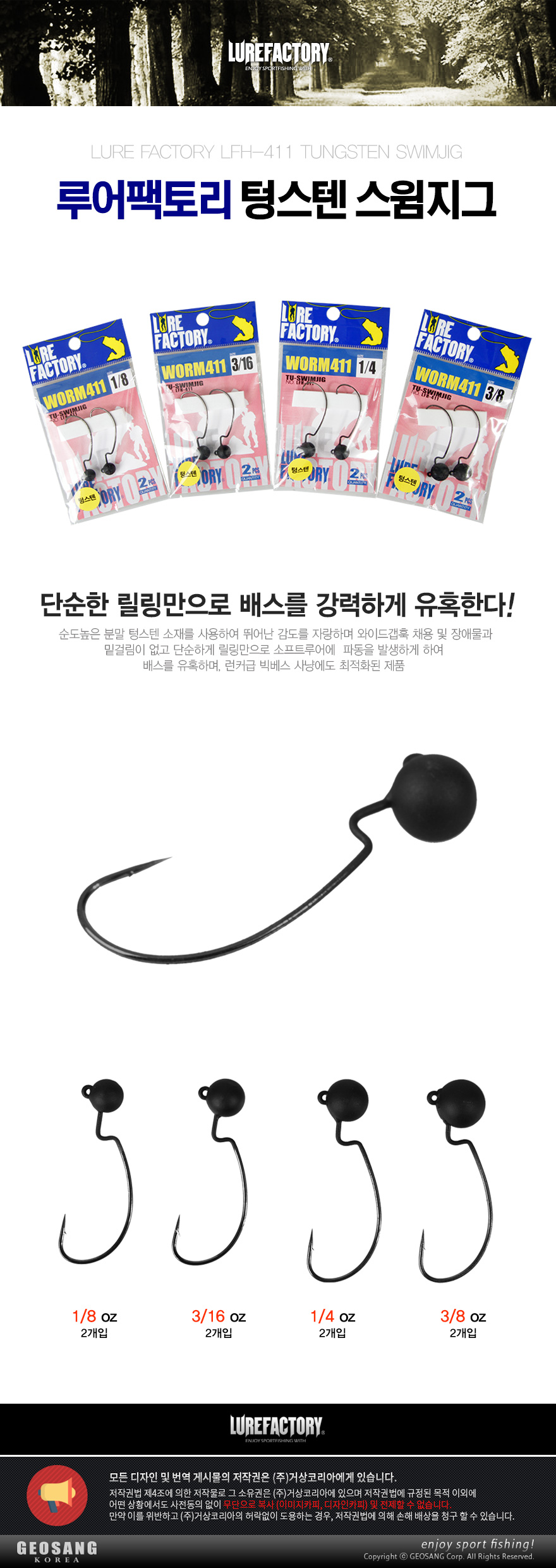 형제낚시 낚시용품의 모든것 루어팩토리 LFH-411 T-SWIMJIG/텅스텐 스윔지그 헤드