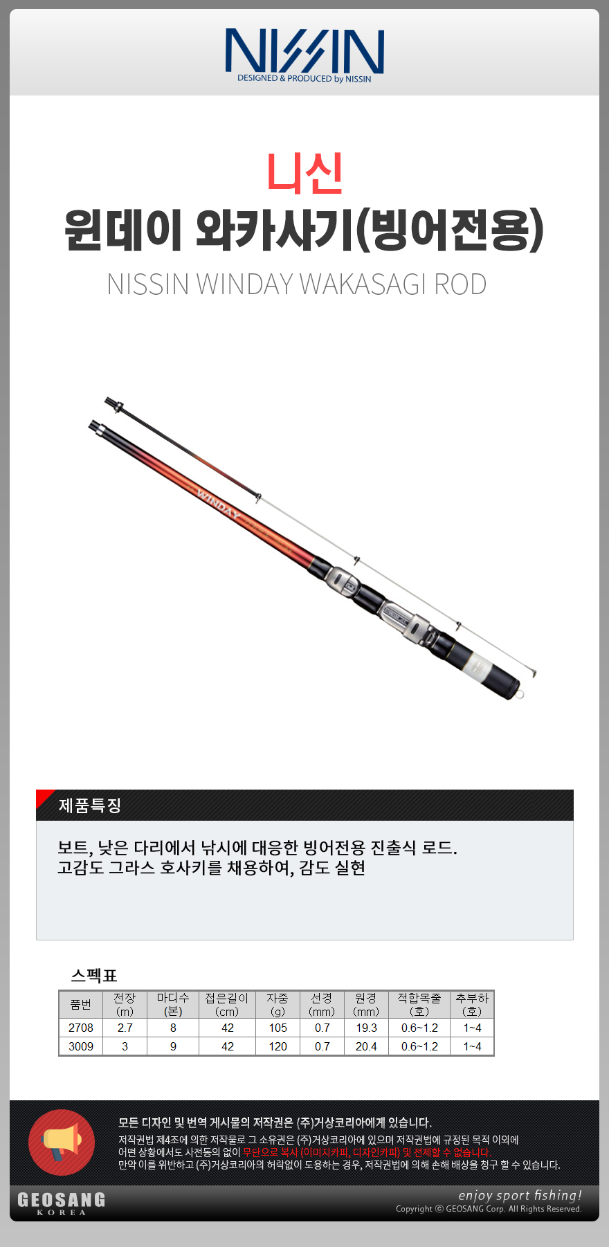 형제낚시 낚시용품의 모든것 니신 니신 윈데이 와카사기 빙어전용대/빙어낚시로드