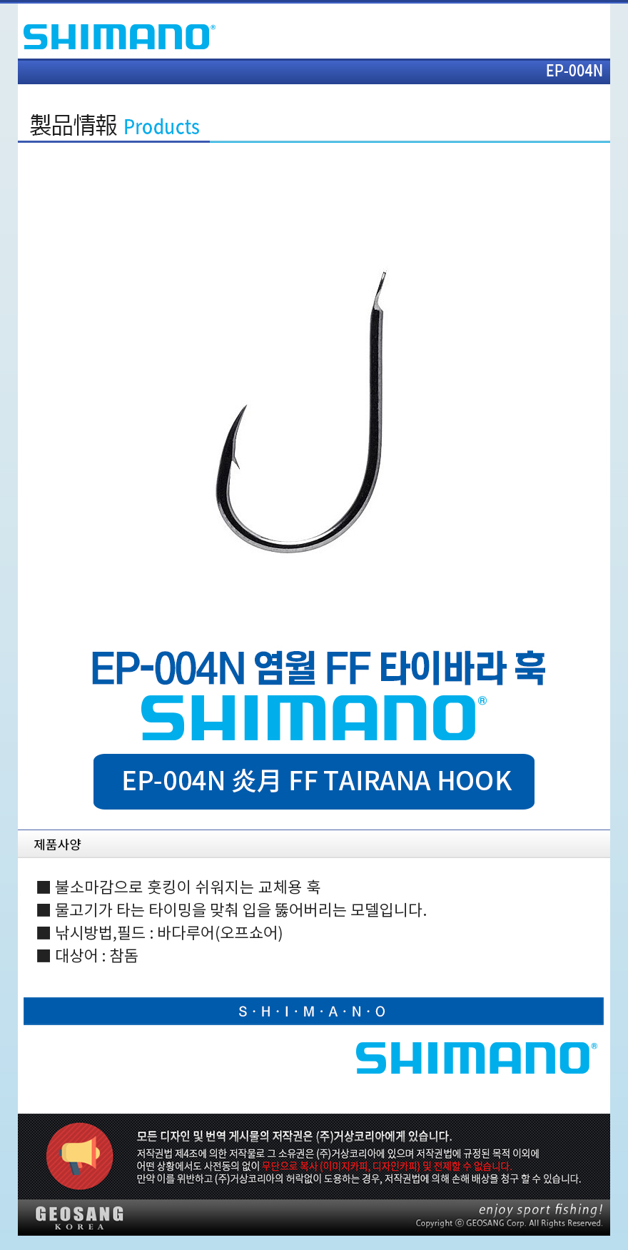 형제낚시 낚시용품의 모든것 특가시마노 EP-004N 염월 FF 타이라바 훅/참돔바늘