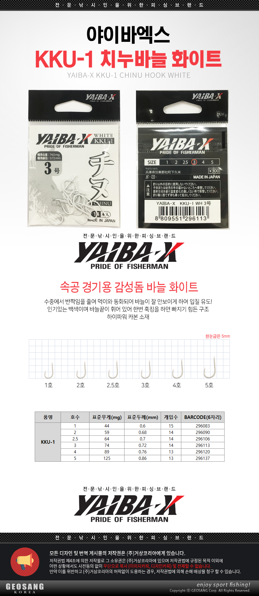 야이바엑스 KKU-1 치누바늘 화이트/백침 지누바늘 감성돔바늘