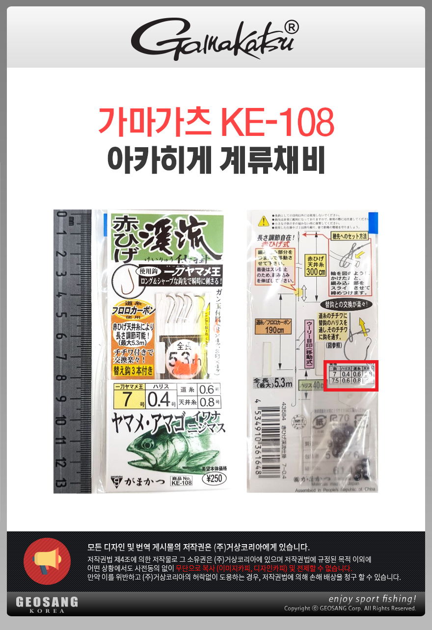 특가가마가츠 KE-108 아카히케 계류채비/송어바늘