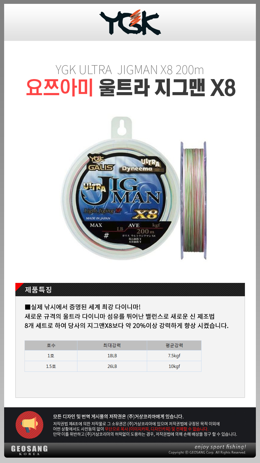 형제낚시 낚시용품의 모든것 요쯔아미 요쯔아미 울트라 지그맨 X8 200m/PE라인 합사원줄