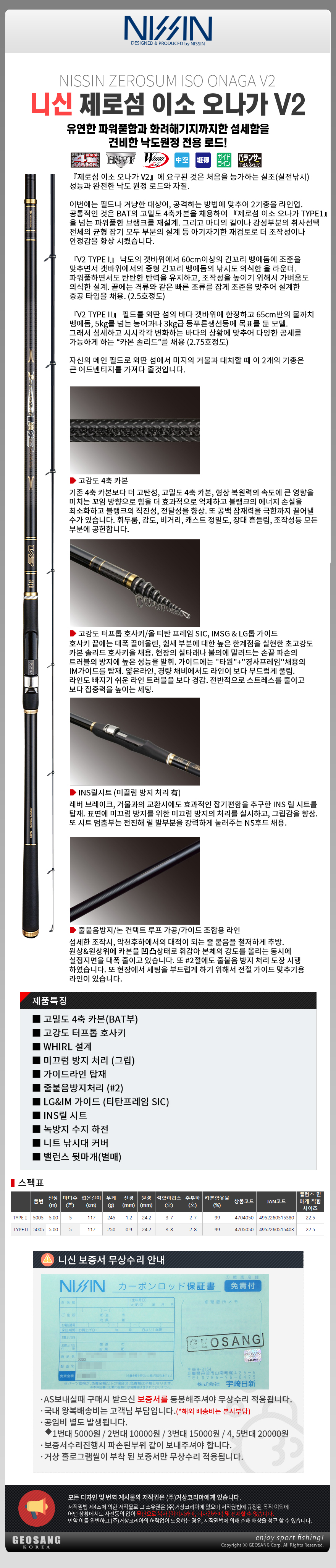 니신 제로섬 이소 오나가 V2/벵에돔낚시대 바다낚시대