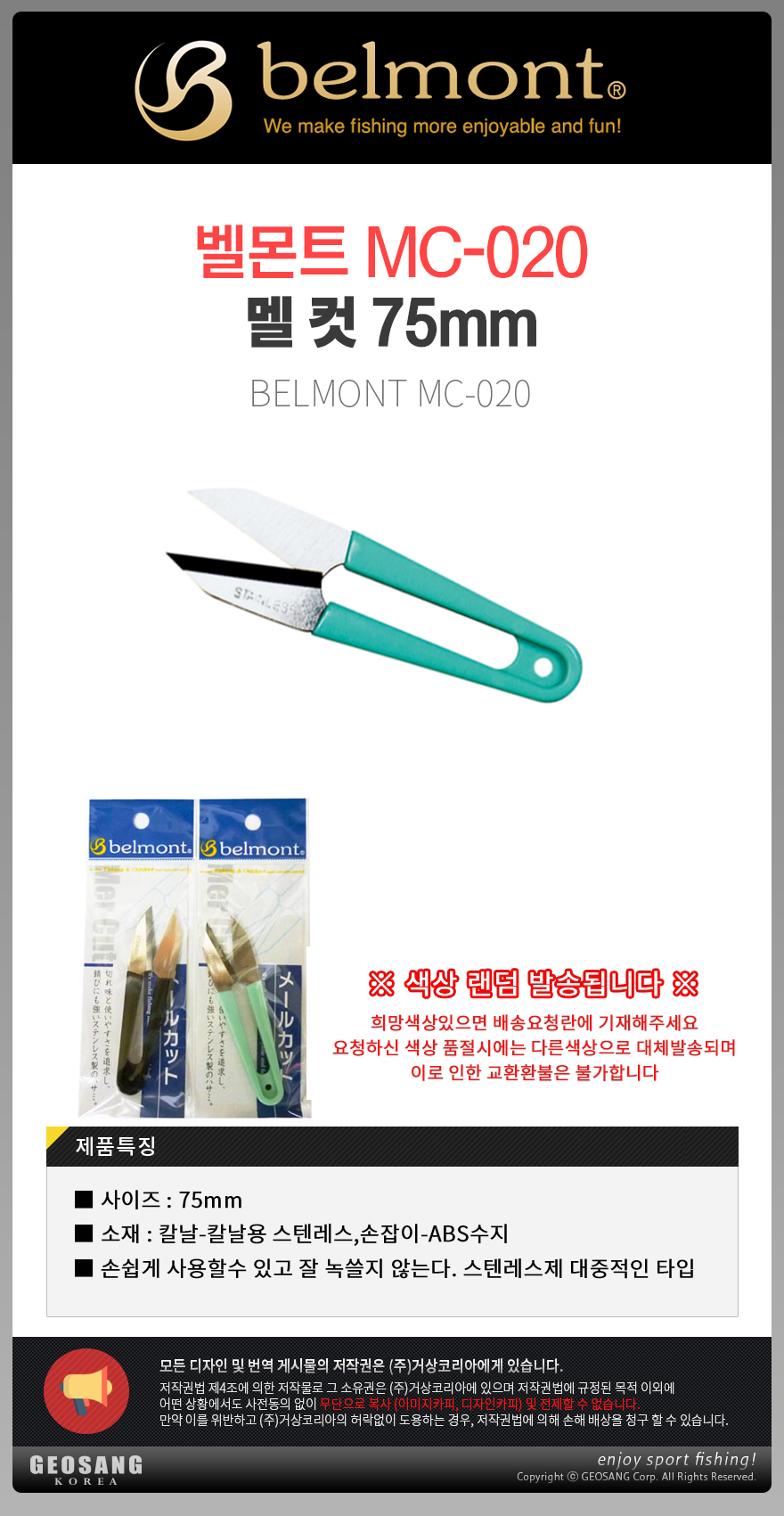 형제낚시 낚시용품의 모든것 벨몬트 MC-020 멜 컷 75mm/쪽가위 라인커터