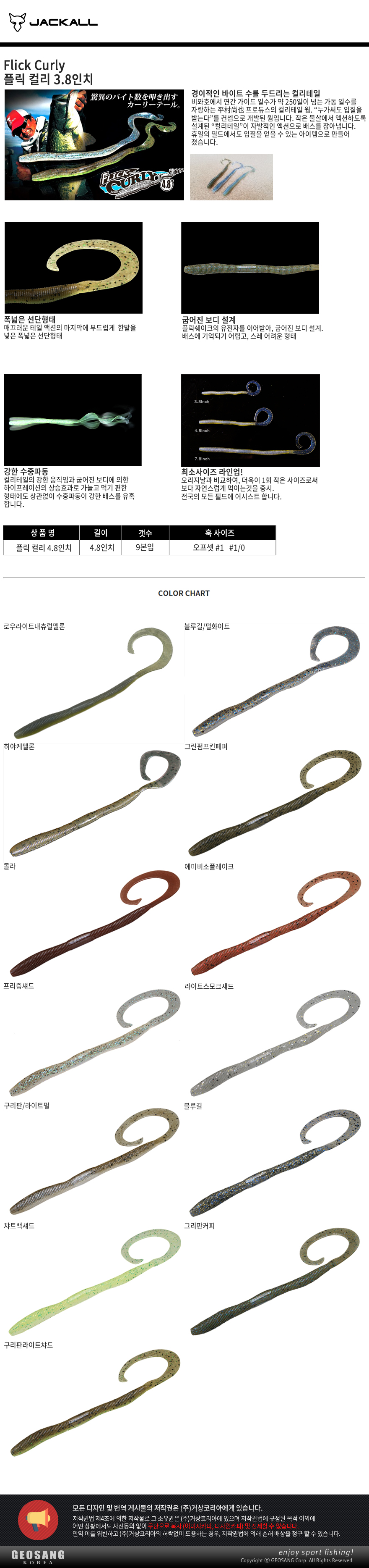 형제낚시 낚시용품의 모든것 쟈칼 플릭 컬리 4.8인치/테일웜 배스낚시 배스루어