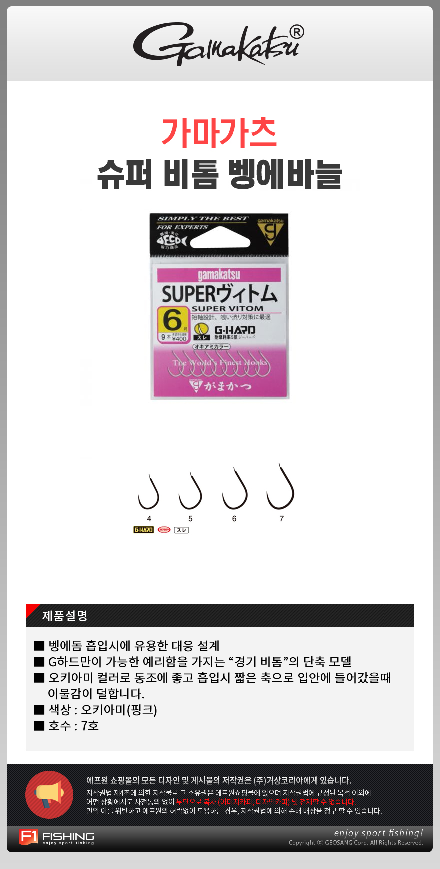 형제낚시 낚시용품의 모든것 특가가마가츠 슈퍼 비톰 7호/벵에돔 바늘