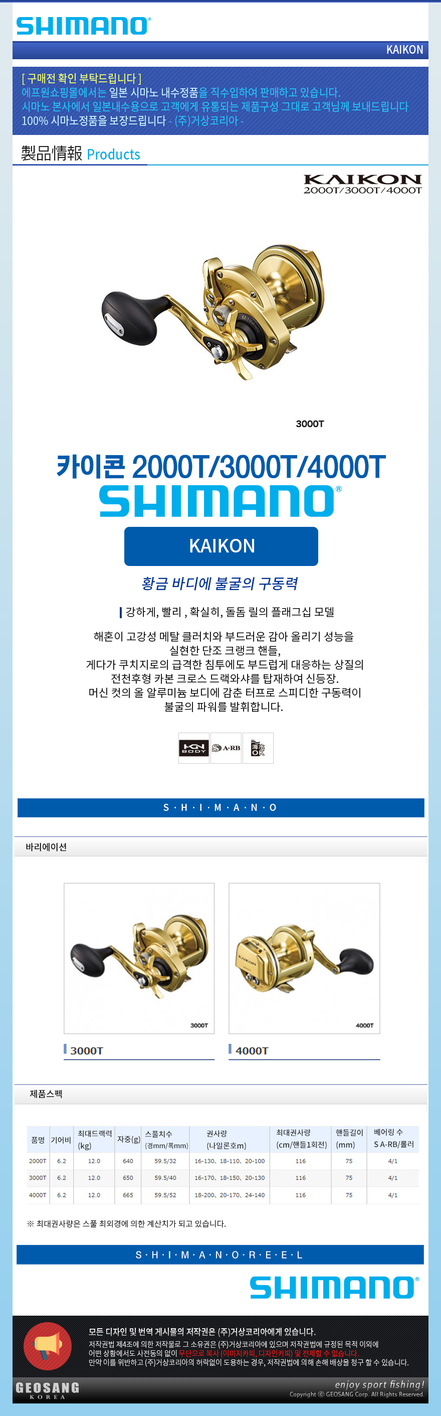형제낚시 낚시용품의 모든것 시마노 시마노 KAIKON(해혼) 2000T / 해혼