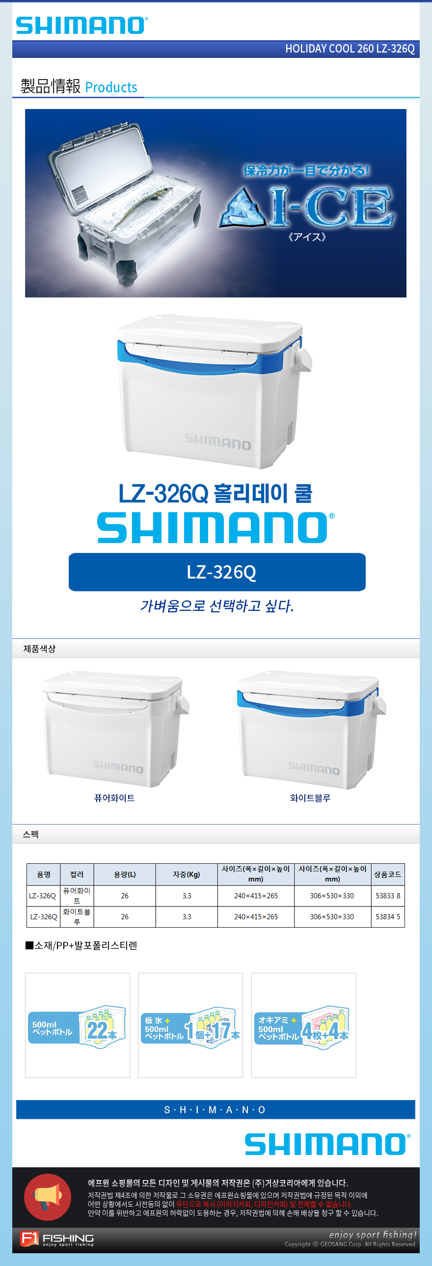 형제낚시 낚시용품의 모든것 시마노 시마노 아이스박스 LZ-326Q 홀리데이쿨/26리터 쿨러 아이스박스