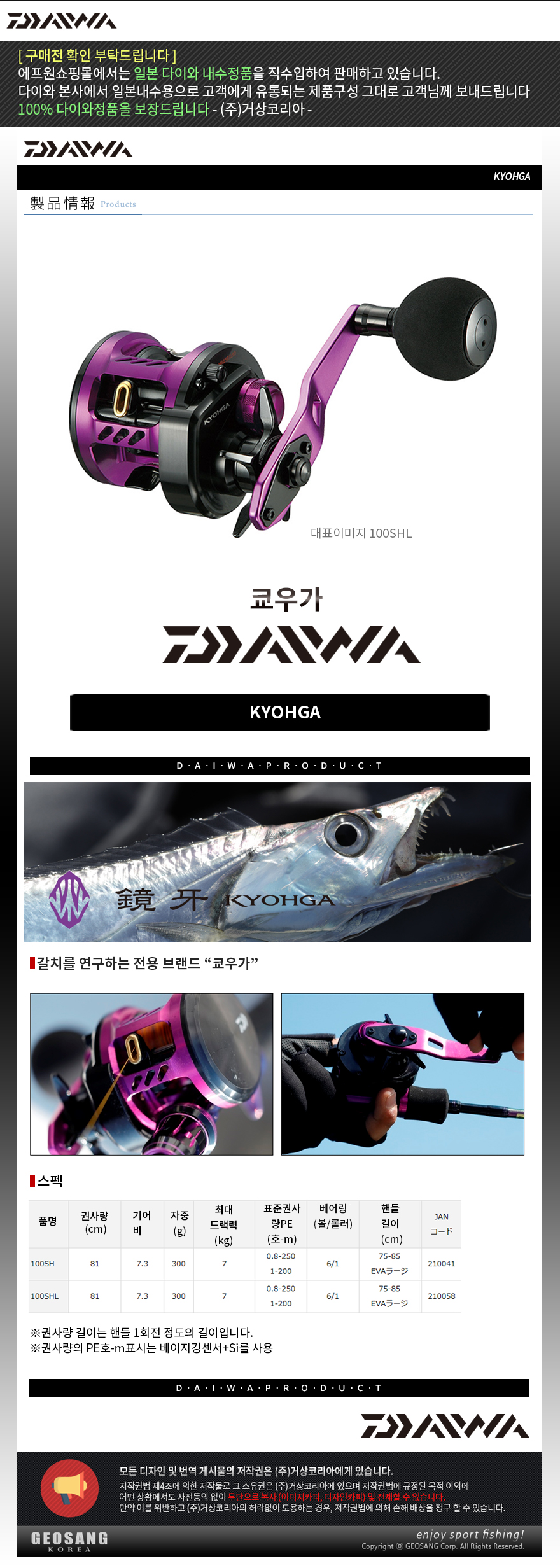 형제낚시 낚시용품의 모든것 다이와 다이와 쿄우가 100SHL/갈치전용릴 일본내수정품