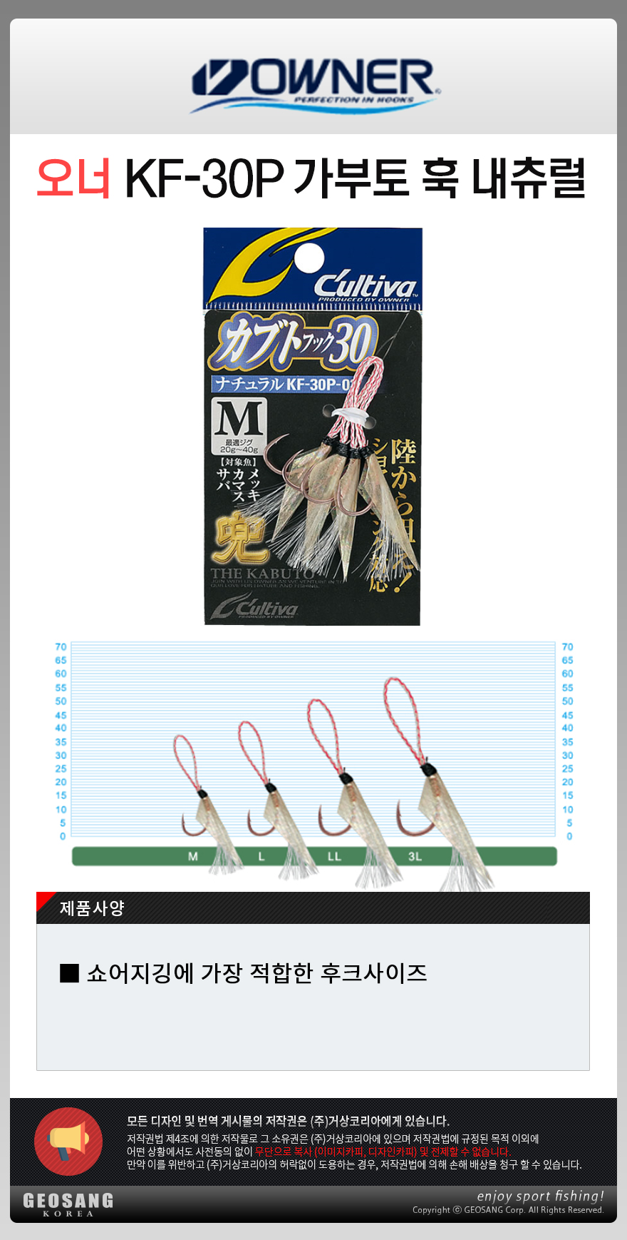 형제낚시 낚시용품의 모든것 오너 KF-30P 가부토 훅 내츄럴/쇼어지깅훅지깅바늘