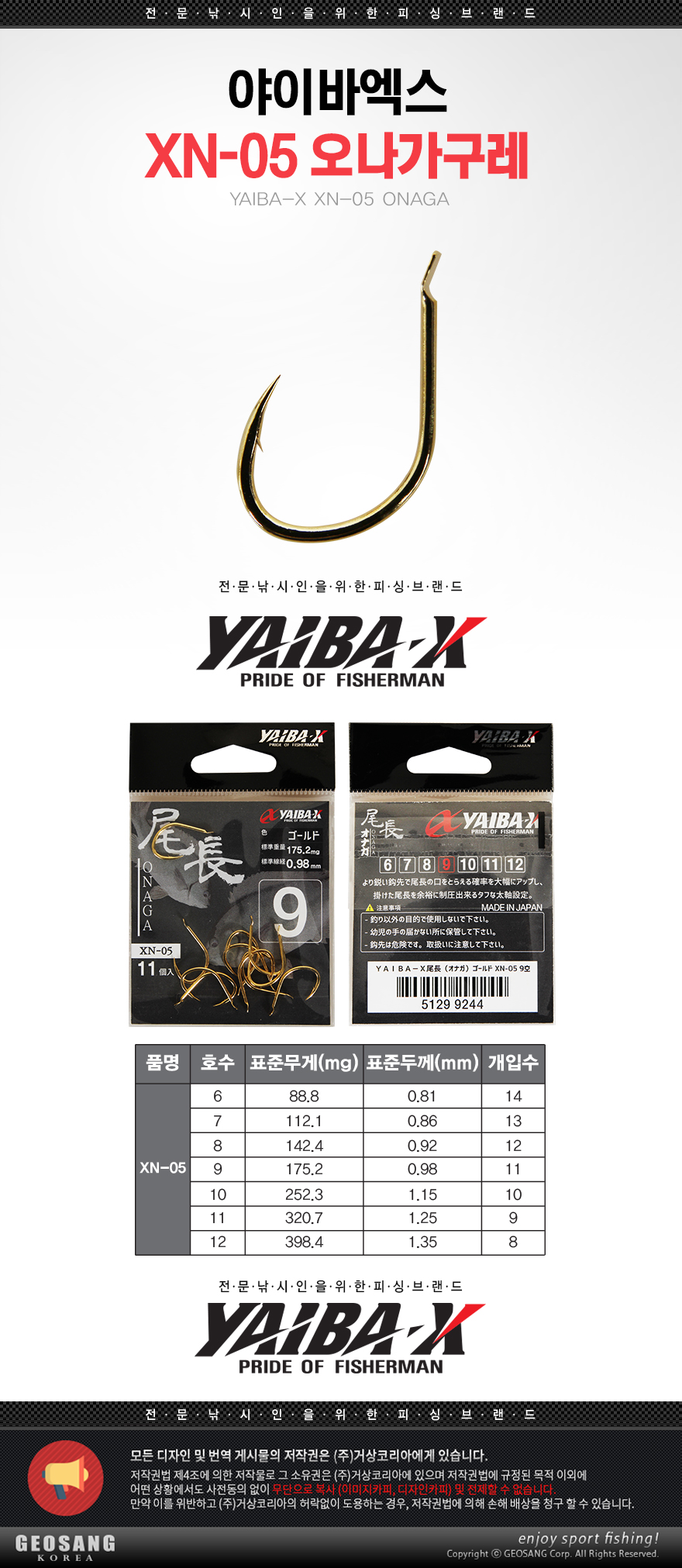 야이바엑스 XN-05 오나가구레 금/긴꼬리 벵에돔바늘