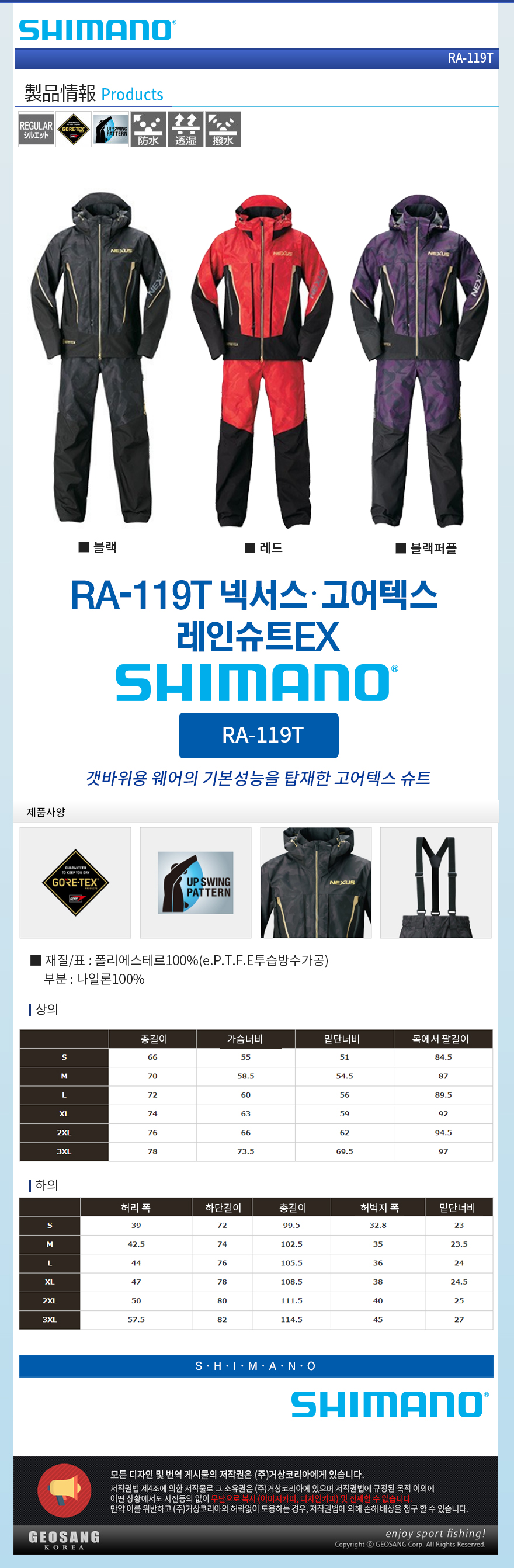 시마노 RA-119T 레인슈트EX블랙/시마노비옷