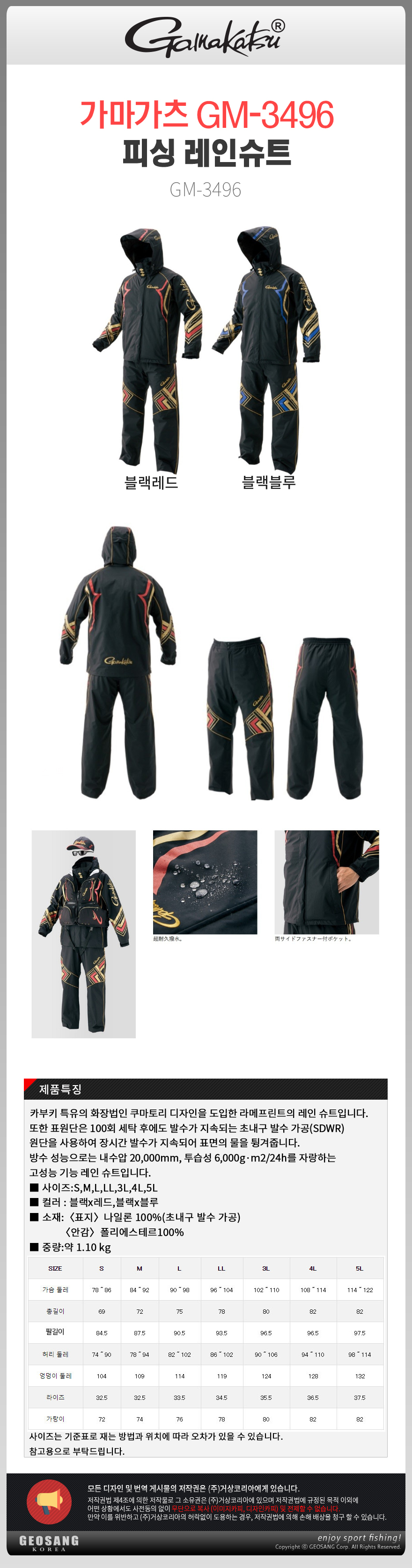 가마가츠 GM-3496 레인슈트/낚시비옷 바다낚시복