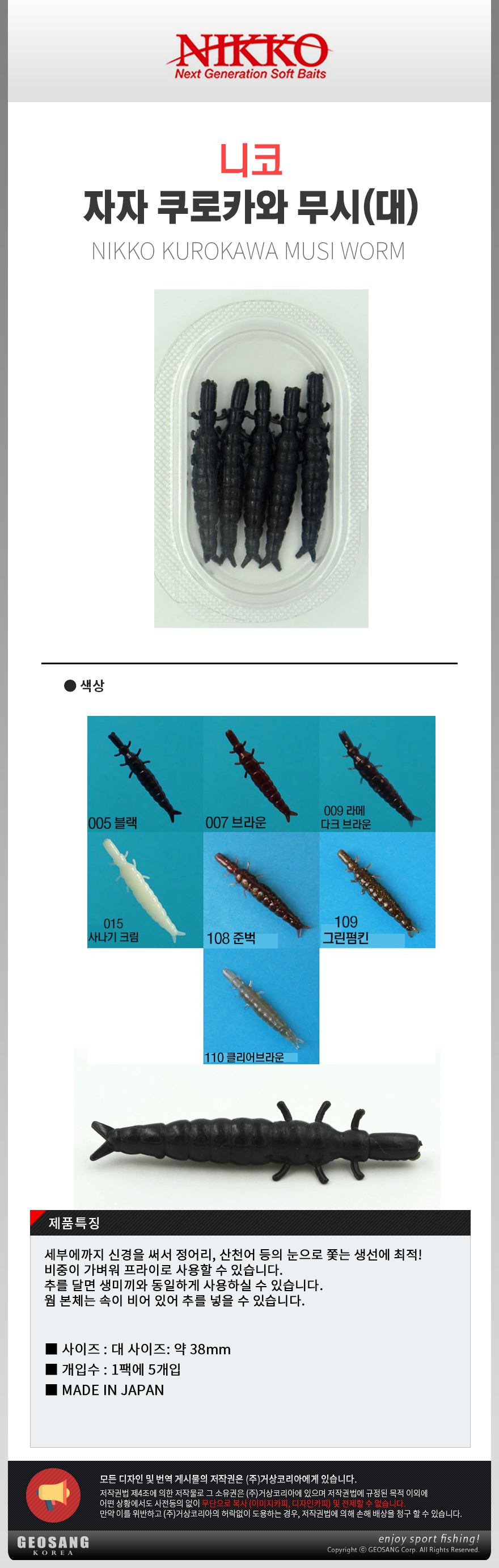 형제낚시 낚시용품의 모든것 니코 쿠로카와 벌레웜 대/소프트웜 벌레웜 플로팅웜