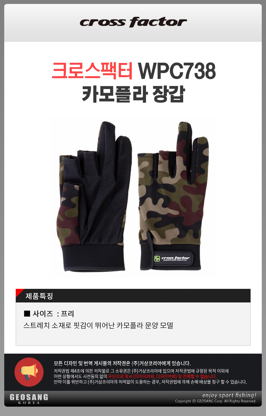 크로스팩터 WPC738 카모플라 장갑 3본컷/낚시글러브