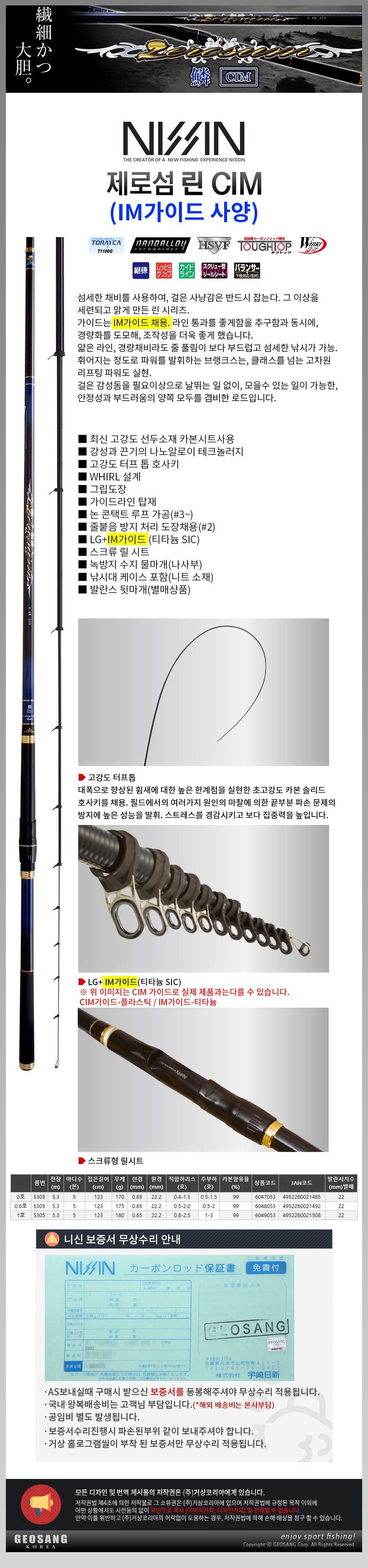 니신 제로섬 린 CIM 1-530 IM가이드 / 찌낚시대 감성돔
