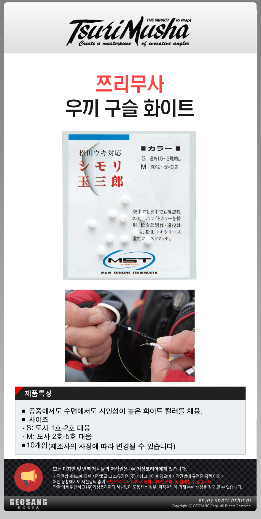 선라인 MST-우끼구슬 화이트/쿠션고무 찌고무 구슬채비