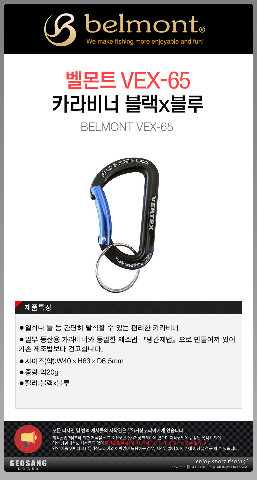형제낚시 낚시용품의 모든것 벨몬트 카라비너 VEX65/휴대용카라비너 분실방지 안전고리