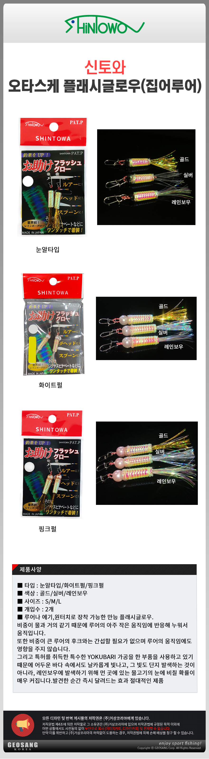 형제낚시 낚시용품의 모든것 신토와 오타스케 플래시글로우 S/집어루어 지깅 갈치