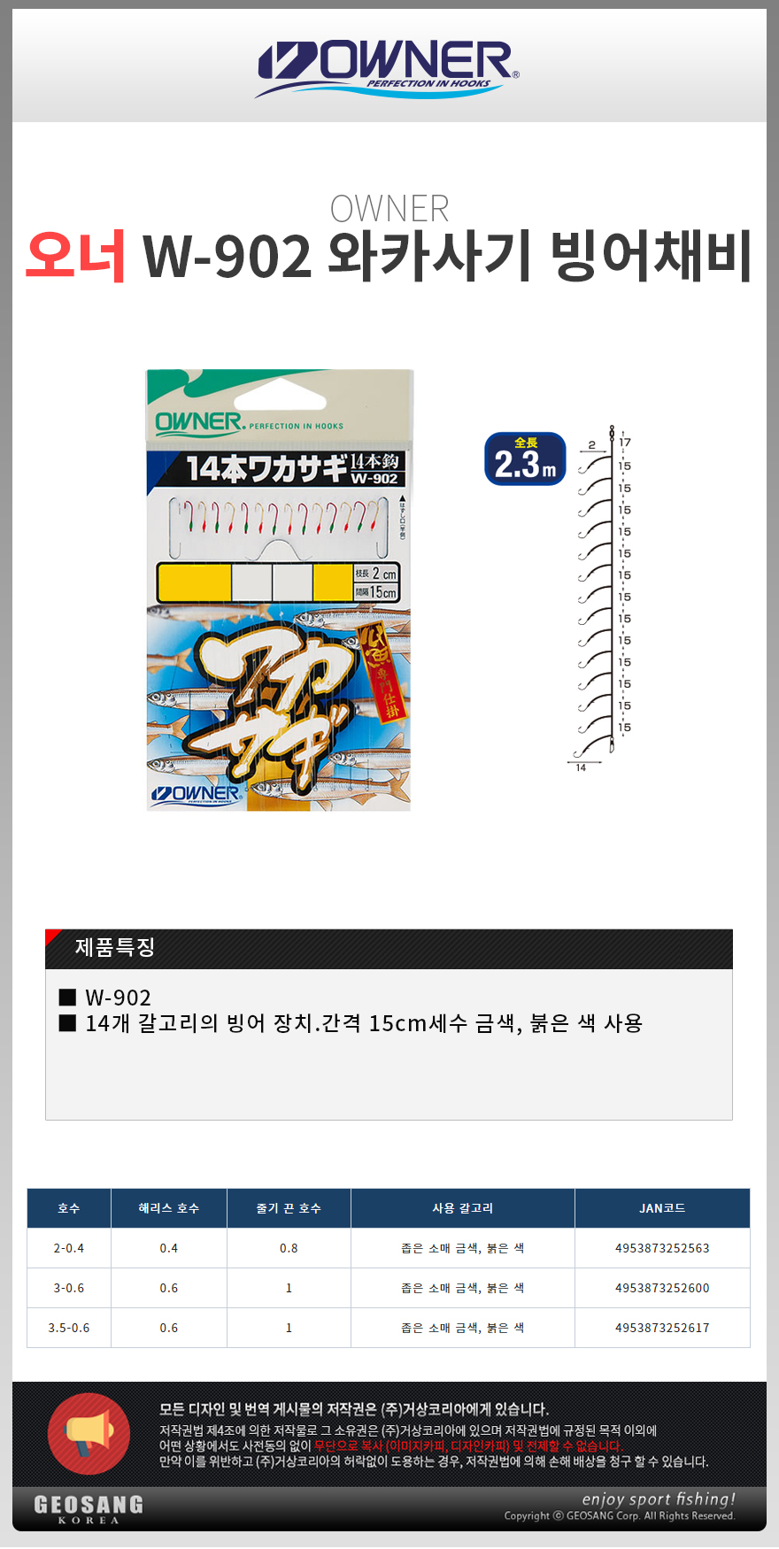 형제낚시 낚시용품의 모든것 특가오너 빙어채비 W-902 와카사기 14본 3.5-0.6