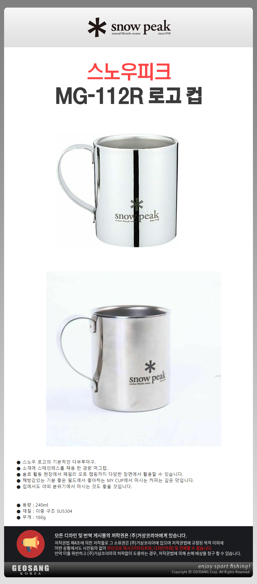 형제낚시 낚시용품의 모든것 스노우피크 스노우피크 MG112R/로고더블머그컵 낚시 캠핑용품