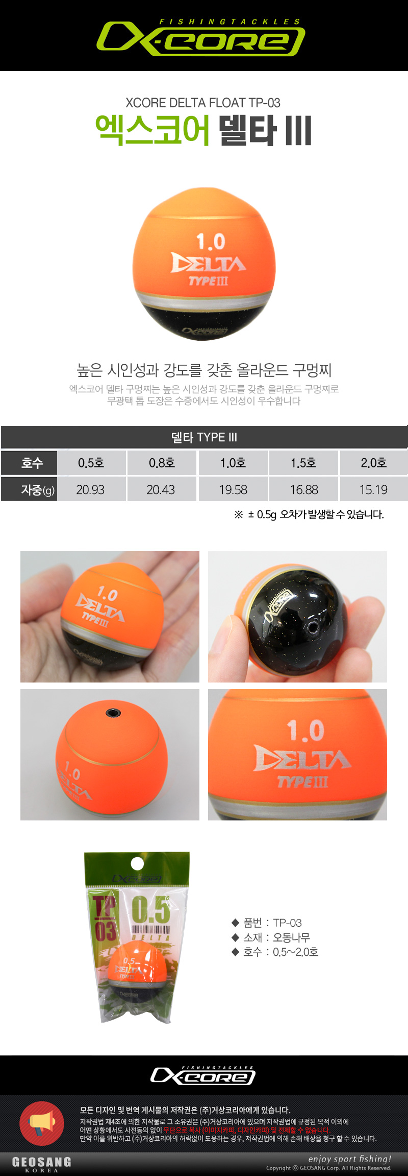 엑스코어 NEW 델타 구멍찌 TP-03 TYPE-III /바다찌/낚시찌