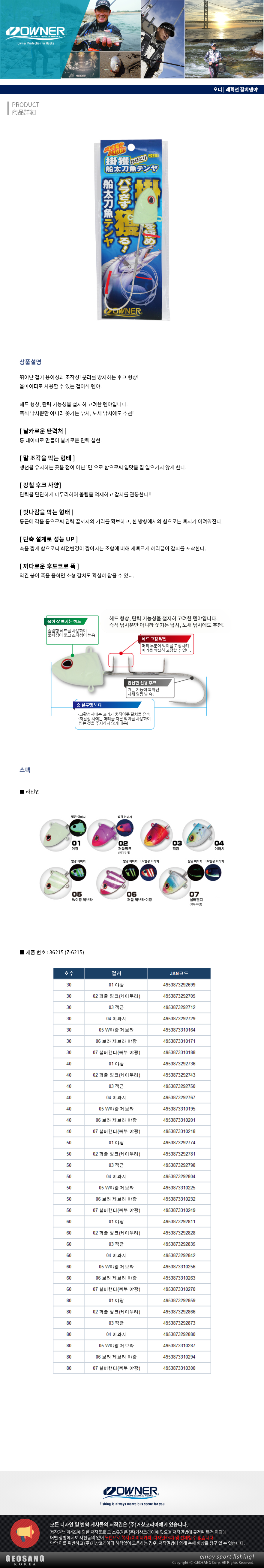 오너 Z-6215 괘획선 갈치텐야