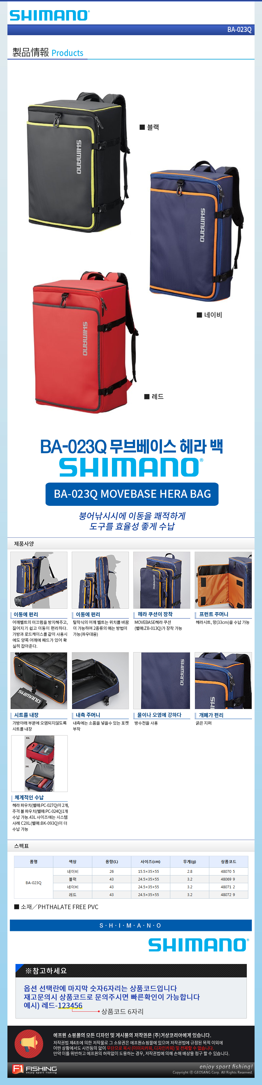 형제낚시 낚시용품의 모든것 시마노 시마노 BA-023Q