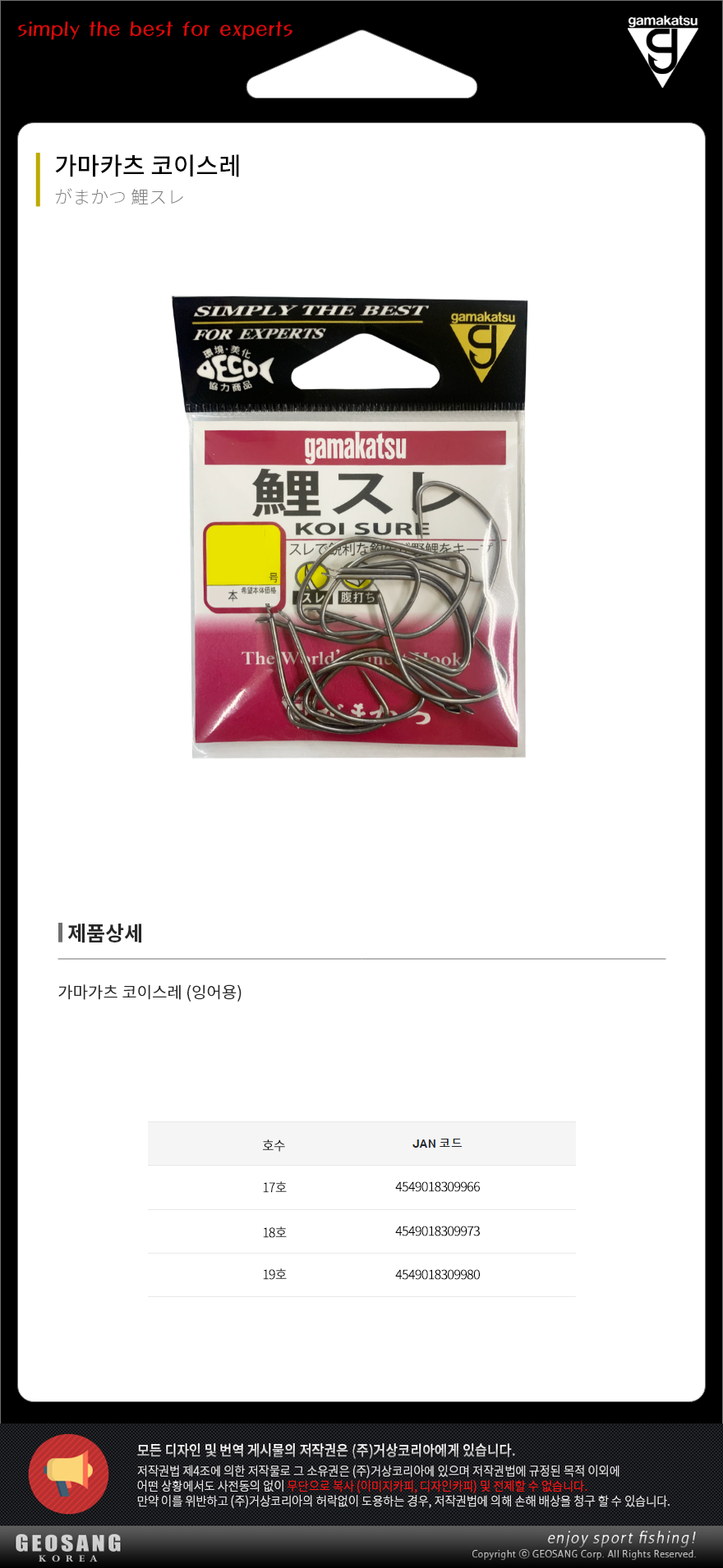 형제낚시 낚시용품의 모든것 가마가츠 코이스레 잉어 차 낚시바늘 잉어바늘