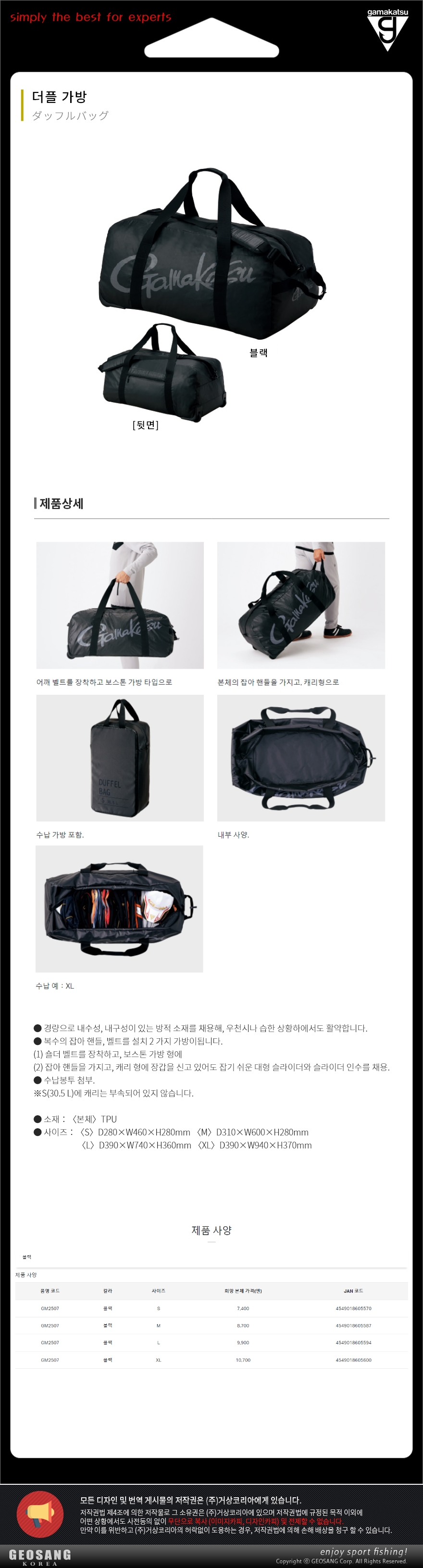 형제낚시 낚시용품의 모든것 가마가츠 가마가츠 더플가방 GM-2507