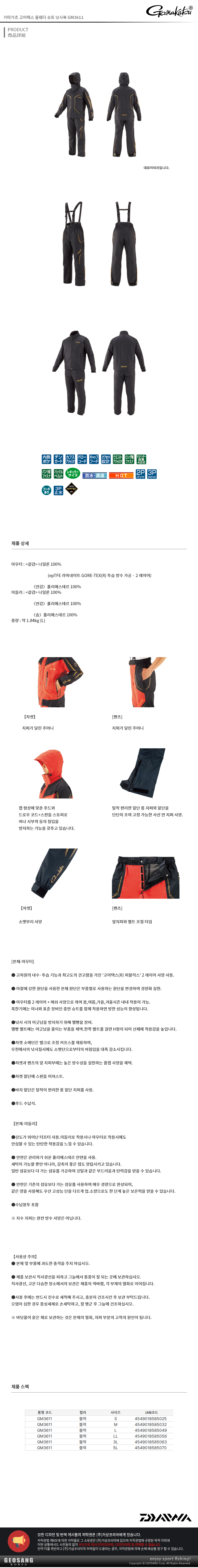 형제낚시 낚시용품의 모든것 가마가츠 가마가츠 고어텍스 올웨더슈트 낚시복/낚시비옷 GM-3611