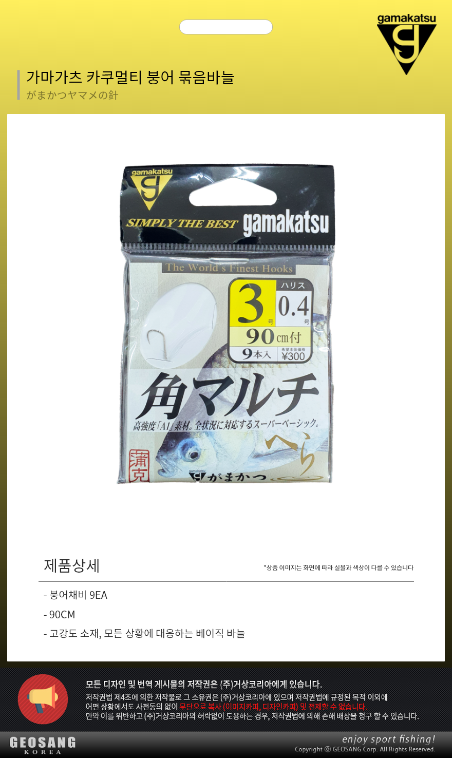 형제낚시 낚시용품의 모든것 특가가마가츠 가쿠멀티 묶음바늘 90cm 3-0.4
