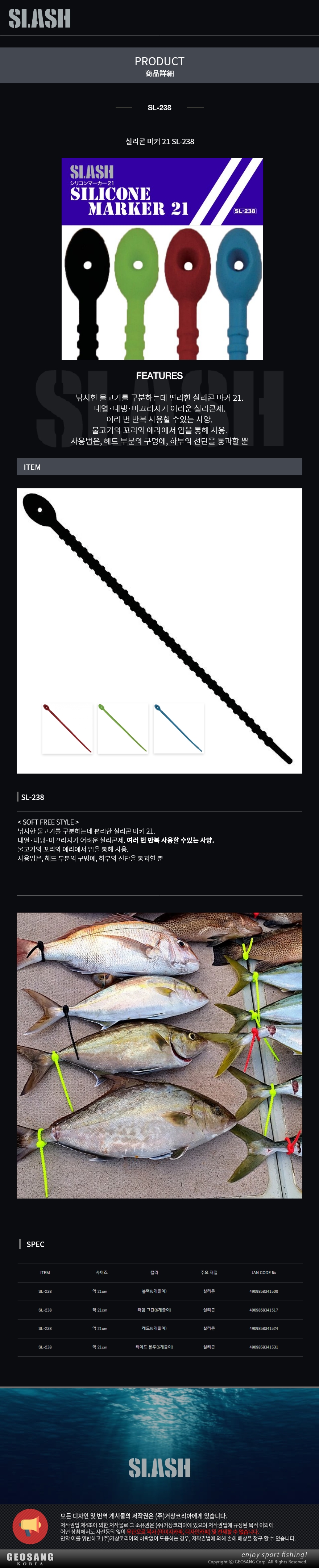 형제낚시 낚시용품의 모든것 슬라쉬 실리콘 마커 21 SL-238
