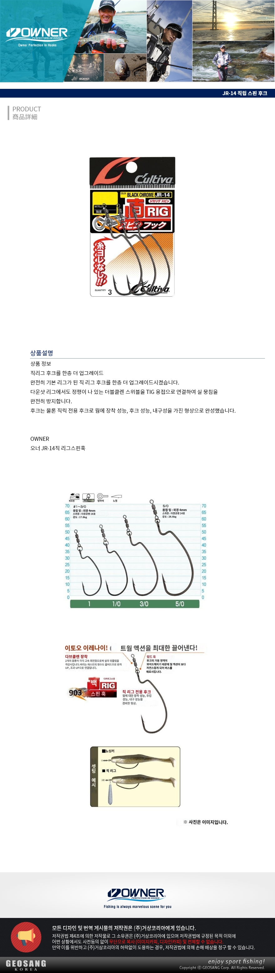 형제낚시 낚시용품의 모든것 특가오너 JR-14 직접 리그 스핀 후크